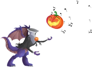 Halloween Dragon (German: Halloween-Drache; Spanish: Dragón Halloween; French: Dragon Halloween; Japanese: ハロウィン; Russian: Хэллоуинский дракон; Turkish: Cadılar Bayramı Ejderhası) is the twelfth entry for Venturer. Halloween Dragon is a Rare Dragon with the primary typing of Dark. Halloween Dragon can also learn Nature moves.
