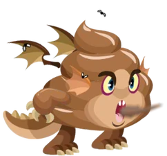 A full, round body that resembles a living pile of animated muck. Its wings and claws are well developed, giving it a strong yet comical look. Its large expressive eyes and exaggerated mouth keep its humorous personality intact, making it one of the most iconic and playful dragons in Dragon City.