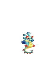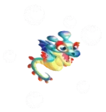 A bright burst of color and curiosity. Its big, expressive eyes take in the world with wonder while its tiny fins and frills flutter excitedly. Although small, it already shows a graceful swimming motion—on land or in water—wiggling in a way that resembles a real seahorse. Gentle and playful, it sticks close to its trainer for comfort.