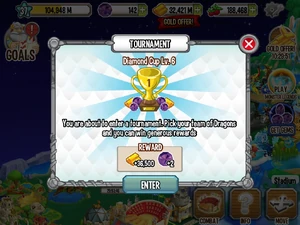 You are asked to select 3 dragons at or above Level 4 from your stable before each tournament. In each tournament, you will meet either 2 or 3 challengers. In tournaments named after an element (e.g., Nature Cup 1), you will battle Dragons that are part Nature for tournaments named after gems (e.g., Emerald Cup 1 and Sapphire Cup 1). The challengers may not necessarily be related to one another.