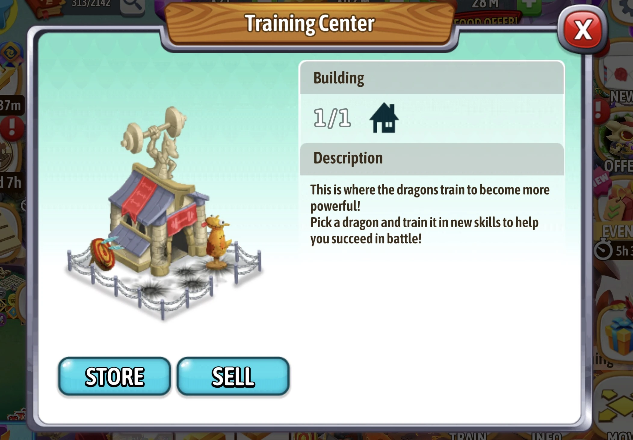 The Training Center can only be used by dragons that are level 15 and above. You must be level 20 or above to be able to buy this Building. Using the Training center can teach the dragons stronger and new attacks in Combat.