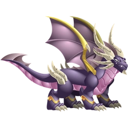 It begins to display the proud stature it will one day command. Its wings expand with sleek golden edges, its horns sharpen, and its scales deepen into a regal purple. Confident but still youthful, it starts learning to channel the cooperative energy that makes its species so special.