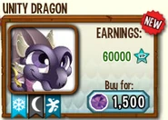 Unity Dragon (German: Eintrachtsdrache; Spanish: Dragón unidad; French: Dragon de l'Unité; Japanese: ユニティードラゴン; Russian: Дракон Единства; Turkish: Birlik Ejderhası) is the fifteenth entry for Purist. Unity Dragon is an Epic Dragon with the primary typing of Dark. Unity Dragon can also learn Ice and War moves.